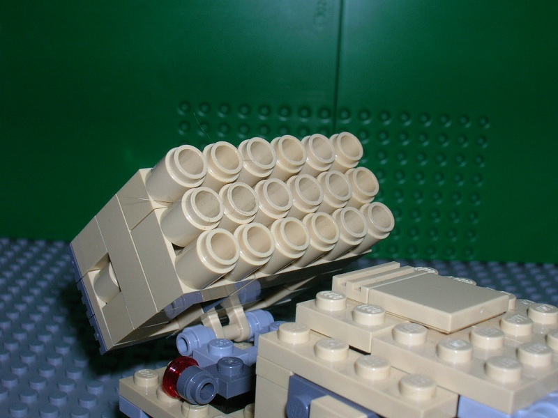 最大の特徴は運転席後方のキャビンを潰して取り付けられた18連装ロケットランチャーである。